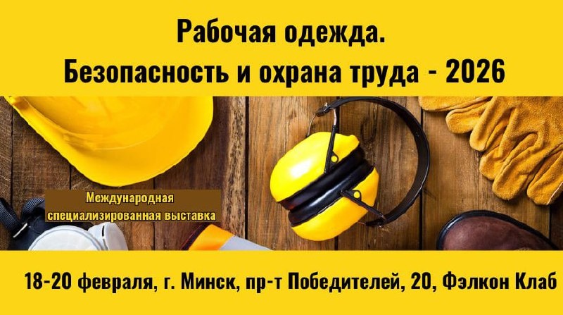 Безопасность и охрана труда - 2026" 📆С 18 по 20 февраля Минск станет эпицентром профессионального диалога о безопасности человека на рабочем месте. 🔽Экспозиция выставки разделена на четыре ключевых блок ✅Спецодежда и обувь - участники продемонстрируют модели с "умными" тканями, адаптивными к погодным условиям, антистатическими и маслоотталкивающими свойствами. Отдельное внимание - эргономике и корпоративному стилю. ✅Средства индивидуальной защиты - в центре внимания "умные" СИЗ: каски с трекерами здоровья, страховочные системы с датчиками падения, очки с дополненной реальностью и экзоскелеты для снижения нагрузки на опорно-двигательный аппарат. ✅Безопасность и охрана труда - программные комплексы для оценки профрисков, цифровые платформы и тренажеры для обучения персонала. ✅Профессиональный клининг и уход за спецодеждой - сохранение защитных свойств спецодежды и СИЗ через правильную стирку, дезинфекцию и обслуживание. ➖➖➖➖➖➖ ➡️Участие в мероприятиях бесплатное. Подробная програ