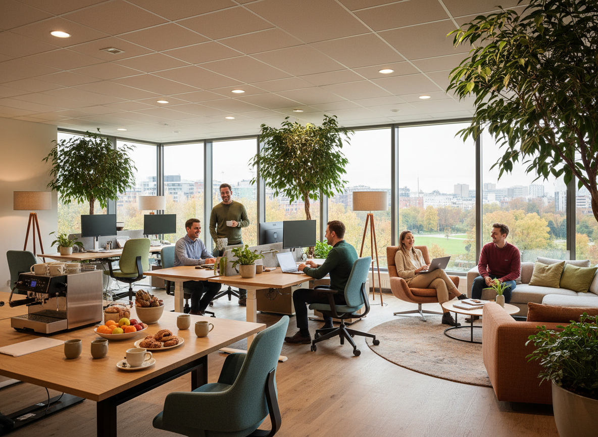 Из-за высокого уровня стресса приоритетным требованием россиян к рабочему месту становятся зоны отдыха. 70% считают обязательным элементом офиса озеленение рекреационных пространств, 47% ожидают кофе-пойнты, помещения для встреч и неформального общения, а 36% нужны площадки на открытом воздухе. По данным исследования OCTOBER GROUP, 23% офисных сотрудников отмечают снижение стресса и рост продуктивности в «живой» зеленой среде, а каждый третий использует зоны отдыха не только для отвлечения от дел, но и для работы. Запрос на человекоцентричные офисные пространства во многом формируется через природные элементы и качество внутренней среды. По данным OCTOBER GROUP, 70% считают озеленение необходимым элементом бизнес-центра — от точечных акцентов до зимних садов и фитостен. При этом ожидание сводится не только к визуальному эффекту: 47% связывают подобные решения с улучшением микроклимата, 23% — с ростом продуктивности и снижением уровня стресса, а 28% отмечают, что озеленение формирует со