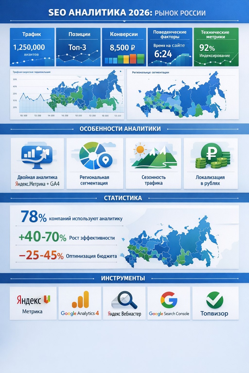 π SEO-Π°Π½Π°Π»ΠΈΡΠΈΠΊΠ° Π΄Π»Ρ Π ΠΎΡΡΠΈΠΈ: ΠΠ»ΡΡΠ΅Π²ΡΠ΅ ΠΌΠ΅ΡΡΠΈΠΊΠΈ ΠΈ ΠΈΠ½ΡΡΡΡΠΌΠ΅Π½ΡΡ 2026