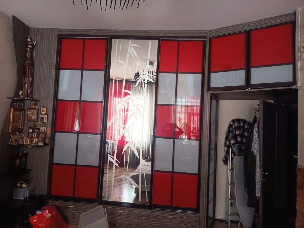 Обратилась "старая" клиентка с просьбой заменить красные прямоугольники в дверях на белые. Мы делали этот примерно в 2009 году, тогда еще было модно делать яркие фасады. Помните, кухни были с яркими салатовыми фасадами, с оранжевыми? Люди активно добавляли яркие пятна в свои жилища. Вот это один из таких приветов из прошлого. Написал этот абзац и подумал - а действительно, когда это модно было, в какие годы?