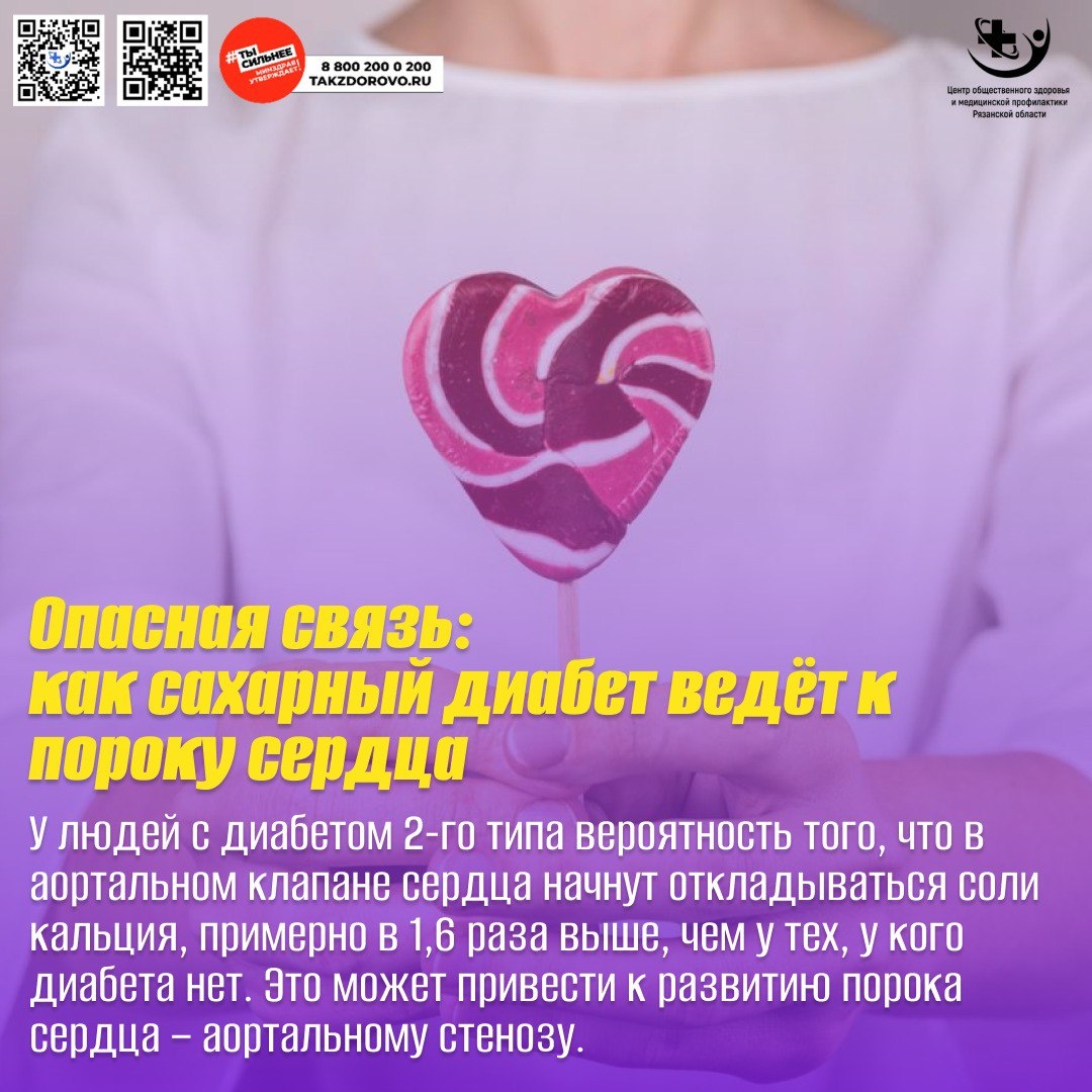 🧁➡️💔 Диабет бьет не только по сосудам, но и по клапанам. Как именно? 🩸 Сладкая кровь — жесткие клапаны Высокий сахар повреждает створки клапанов. Они становятся плотными, теряют эластичность — развивается стеноз (плохо открываются). 🩸 Микротравмы без заживления Клапаны постоянно работают, при диабете любые микроповреждения хуже заживают. Работают как ржавый механизм — износ ускоряется. 🩸 Скрытое воспаление Диабет — это хроническое вялотекущее воспаление. Оно «разъедает» ткани клапанов, делая их уязвимыми. 🩸 Кальций вместо эластичности При диабете кальций активнее откладывается в клапанах (особенно аортальном). Ткань твердеет — сердцу тяжело проталкивать кровь. Итог: диабет старит клапаны раньше времени. Контроль сахара — это не только про зрение и почки. Это про сердце, которое должно работать десятилетиями 📉❤️ #НеделяОсведомленностиОСердце #ДеньПороковСердца #СахарныйДиабет #ЗдоровьеСердца #здоровоебудущее #здоровоебудущее62 #ЗдороваяРязань