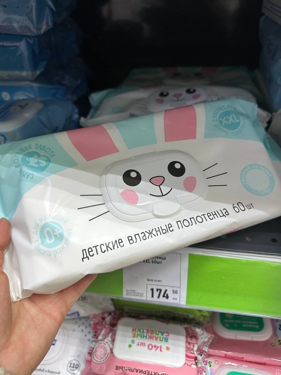 Детские влажные полотенца-60шт, цена 174₽ Фикс прайс, ТЦ Айсберг