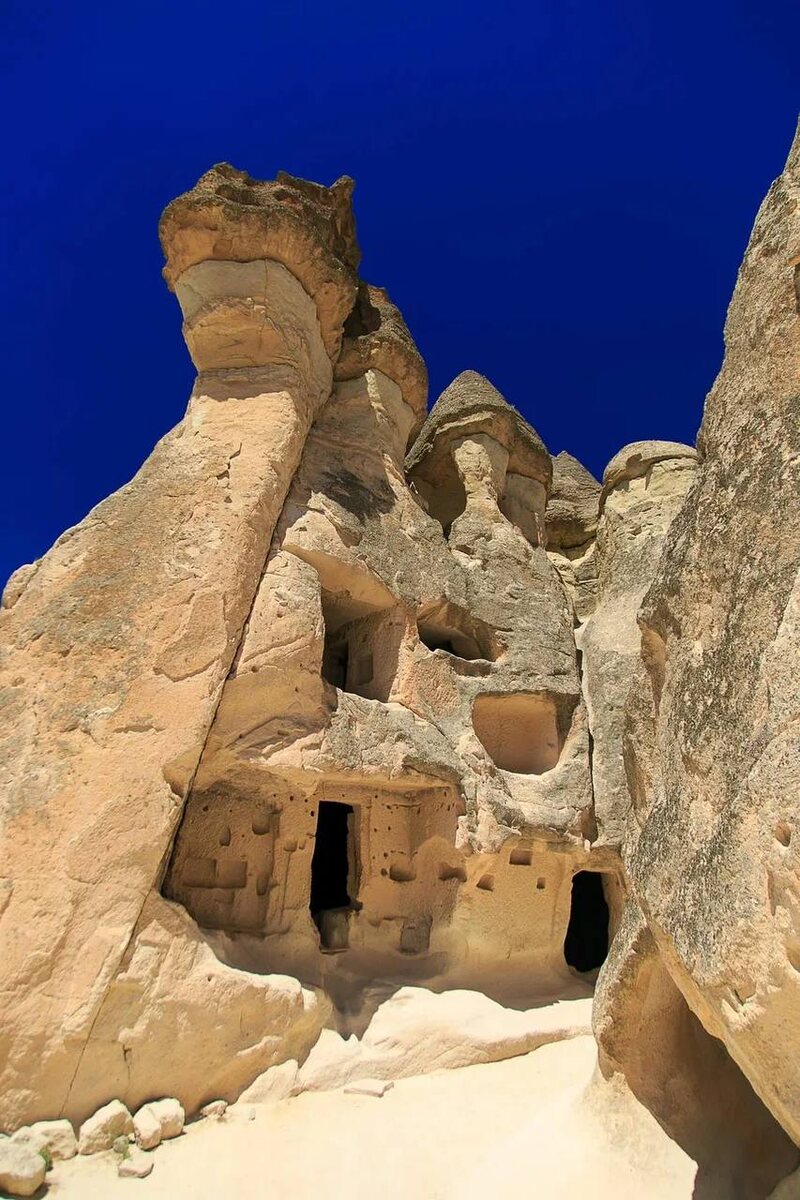 Каппадокия — не декорация к фантастическому фильму. Это результат древней геологической магии, растянувшейся на миллионы лет 🤔 Как всё появилось? Много веков назад вулканы Эрджиес, Хасан и Гюллюдаг щедро извергали пепел и лаву. Пепел спрессовался в мягкую вулканическую породу — туф. А дальше за дело взялись ветер, дождь и время. Они вытачивали ландшафт, словно скульпторы с бесконечным терпением. Так появились знаменитые «каменные грибы» — столбы с плотными «шляпами» сверху. Верхний слой твёрже, чем основание, поэтому он защищает колонну от разрушения. Получились целые долины фантастических форм, будто поверхность другой планеты. Но самое интересное скрыто не снаружи, а под землей ⬇️ Туф мягкий и податливый. Люди поняли это очень давно и начали вырезать в нём жилища. А затем — целые подземные города. Зачем? ▪️ Чтобы укрываться от набегов и войн ▪️Чтобы пережидать опасные времена ▪️ Чтобы хранить запасы и жить автономно Некоторые города уходят на 8–10 уровней вниз. Там были венти