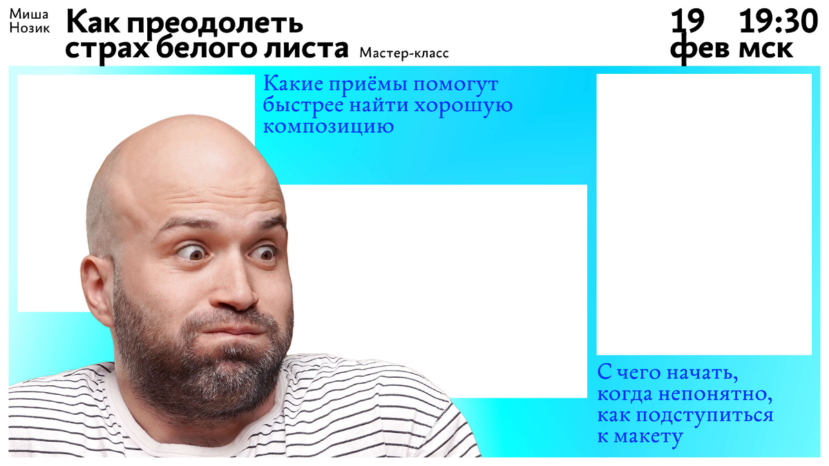 В ЧТ 19 февраля в 19:30 мск — мастер‑класс Миши Нозика «Как преодолеть страх белого листа»