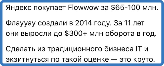 Радуюсь, что у нас вообще сделки m&a происходят в ИТ. Красаучеги, завидую по доброму. Никогда бы не подумал, что на цветах можно сделать в Интернете такой бизнес...