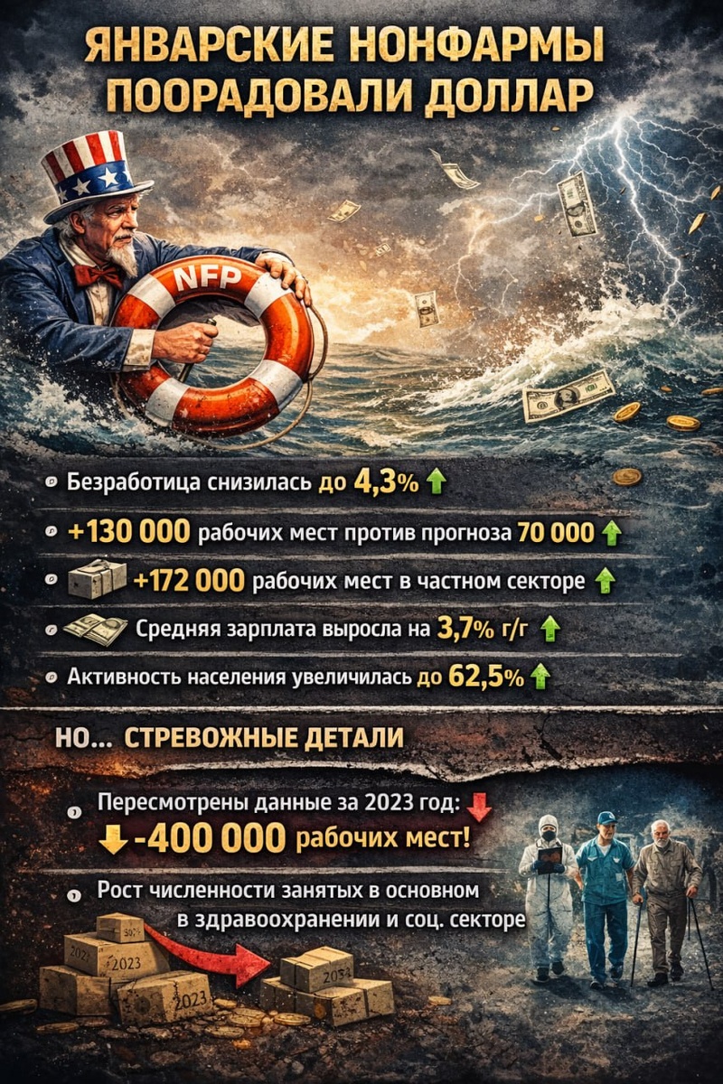 Январские Nonfarm Payrolls неожиданно порадовали доллар: почти все ключевые показатели вышли лучше прогнозов