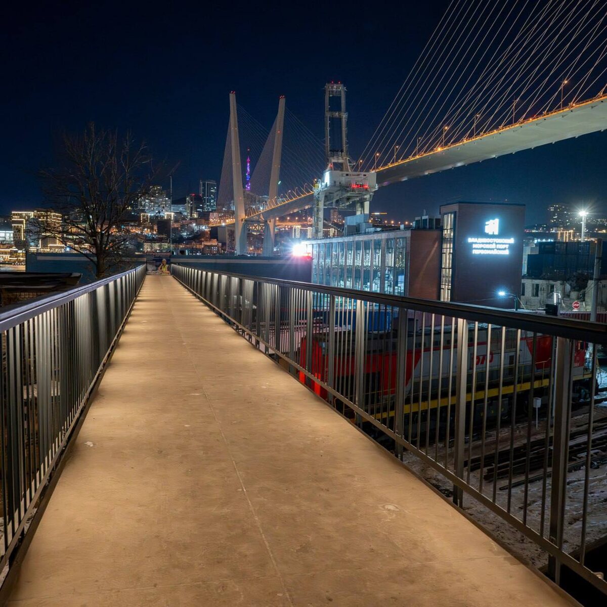 Во Владивостоке обновили один из самых длинных в городе виадуков – надземный пешеходный переход от улицы Берёзовая к 42-му причалу. Вместо старой деревянной конструкции здесь теперь новый бетонный переход с архитектурной подсветкой и смотровой площадкой, с которой открывается красивый вид на Золотой Рог. VL Pro NEWS - подпишись, это интересно