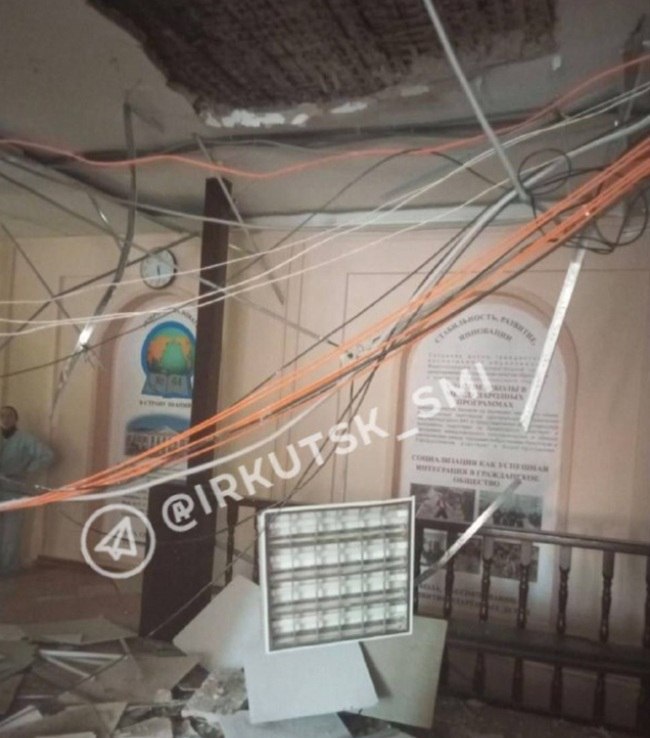 Обрушение потолочного покрытия и электропроводки произошло в школе №64 в Иркутске. По данным прокуратуры, происшествие случилось после 18 часов 11 февраля в фойе школы, детей там не было. «В ходе надзорных мероприятий прокуратурой будет дана оценка исполнению законодательства о защите прав несовершеннолетних, об образовании и обеспечении безопасности образовательного процесса», - сообщили в прокуратуре. СК возбудил уголовное дело по статье о халатности. «В настоящее время следователь СК проводит осмотр места происшествия, допрашиваются очевидцы произошедшего и руководство образовательного учреждения», — говорится в сообщении ведомства. Местное издание «Ирсити» со ссылкой на городскую администрацию пишет, что поврежденного участка — 1,5 на 2 метра. «Упала штукатурка, разрушен подвесной потолок. Детей на первом этаже не было. 12 февраля образовательный процесс организован в дистанционном режиме. Вызваны специалисты для обследования перекрытий», — рассказали в администрации. Здание,