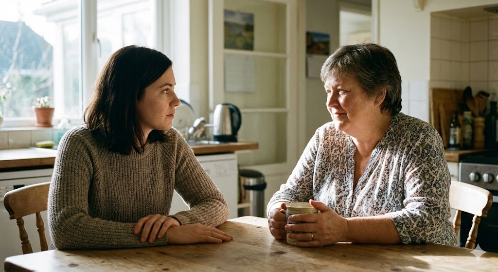 Мы сидели на кухне. Чайник шумел, за окном шёл дождь. Мама пила чай мелкими глотками. Я держала чашку, но не пила — не могла.