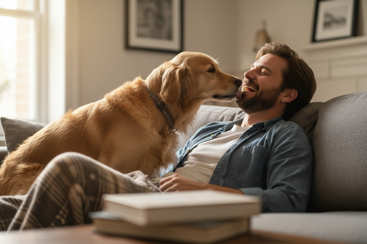 Вылизывание имеет терапевтический эффект не только для человека, но и для самой собаки. Когда питомец нервничает — из-за громких звуков, незнакомой обстановки или разлуки с хозяином — он может начать облизывать всё вокруг, включая людей. Это аутостимуляция, способ успокоиться.