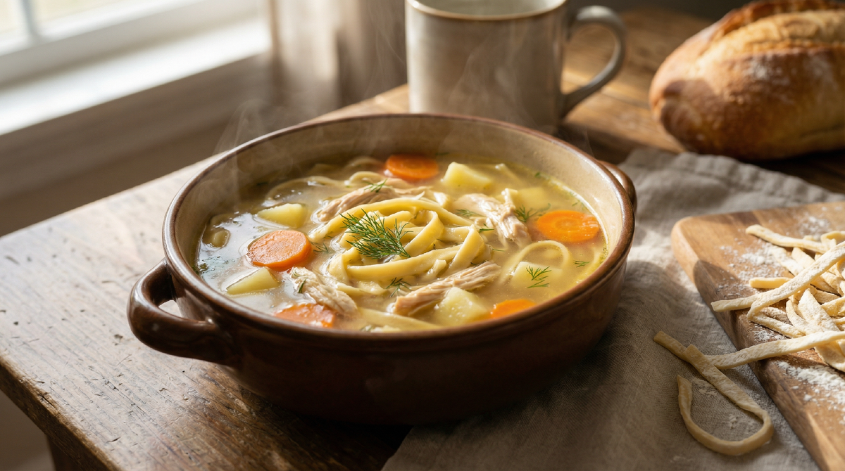Когда речь заходит о настоящем домашнем супе, магазинная лапша просто не выдерживает никакого сравнения. Да, она удобна и экономит время, но вкус и текстура домашней лапши — это совершенно другая история. Помню, как в детстве бабушка раскатывала тесто на большом деревянном столе, а потом нарезала его тонкими полосками. Тот суп с курицей и золотистой лапшой до сих пор остаётся эталоном вкуса в моей памяти.