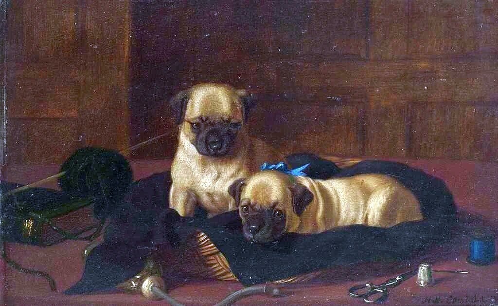 Horatio Henry Couldery (1832–1893), английский художник. #мопс #щенки