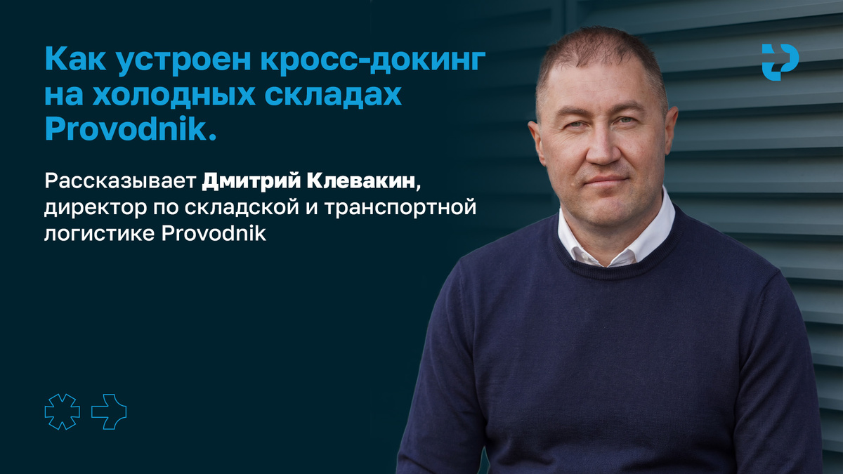 Внутри температурного склада идёт непрерывное движение — особенно если склад работает в режиме кросс-докинга, когда товар почти не хранится, а быстро проходит через приёмку, сортировку и уезжает дальше. Мы поговорили об этом с Дмитрием Клевакиным, директором по складской и транспортной логистике PROVODNIK. В интервью он объясняет, чем кросс-докинг отличается от «классического» склада, почему такой режим требует других таймингов и команды, и что происходит с операциями, когда у тебя на одной холодной площадке сразу несколько крупных клиентов. — Дмитрий, давайте начнём с базового. Чем кросс-док отличается от классического склада? — В классике всё довольно понятно. Машина приехала, мы приняли товар, поставили его в стеллаж. Он может спокойно лежать до тех пор, пока не появится заказ. Когда заказ приходит, сотрудник идёт по ячейкам, собирает нужные позиции, формирует отгрузку — и только после этого товар покидает склад. При кросс-доке товар на полку, по сути, не попадает. Машина подходит к
