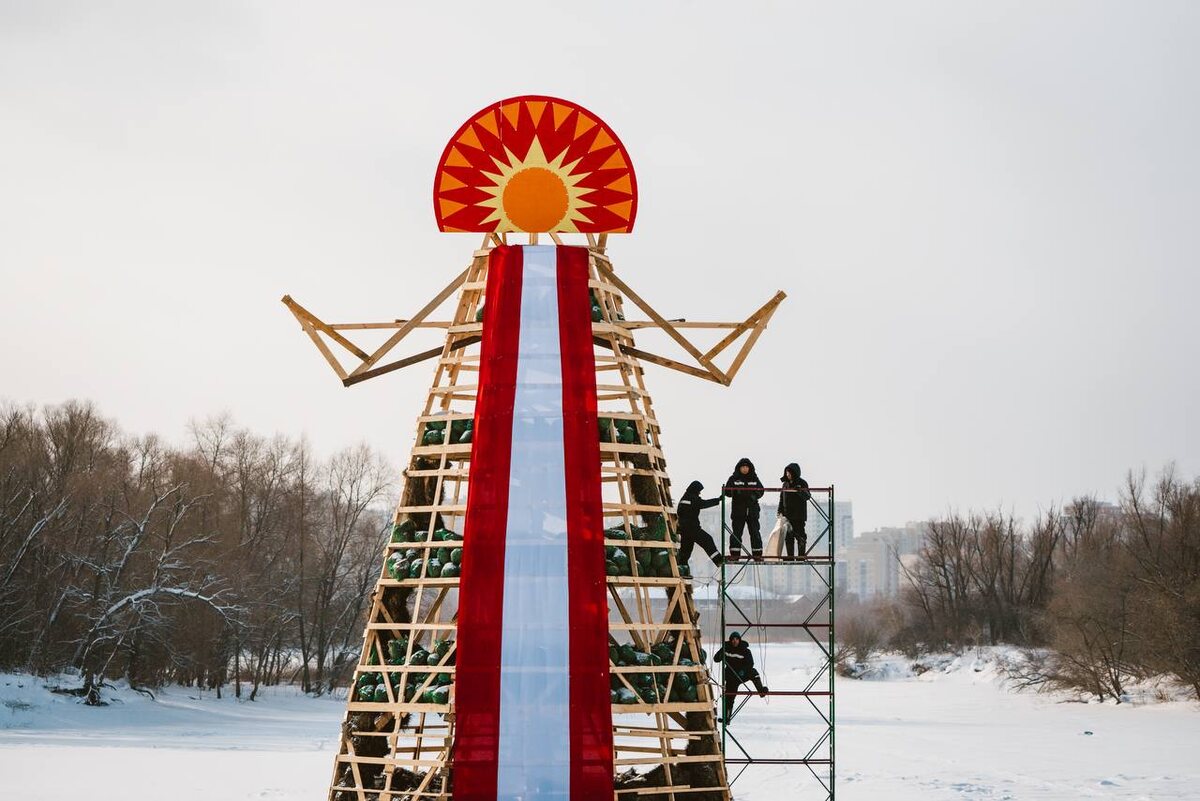 К каркасу гиганта крепят самое большое в городе масленичное платье, что делает символ уходящей зимы по-настоящему готовым к торжеству. Яркий образ Масленицы задаст тон народным гуляниям и станет центром притяжения горожан уже в следующее воскресенье - 22 февраля. Праздничная программа (0+) стартует в 12 часов. Проводы зимы обещают быть шумными и веселыми, с забавами, хороводами и тематическими фотозонами. Ждет гостей праздника и необычное угощение – сибирские костровые блины. Подробнее - по ссылке и в карточке-афише к посту. Фотографии: Виталий Колосов Афиша: Пресс-служба городской зоны отдыха «Зеленый остров» Мы в МАХ
