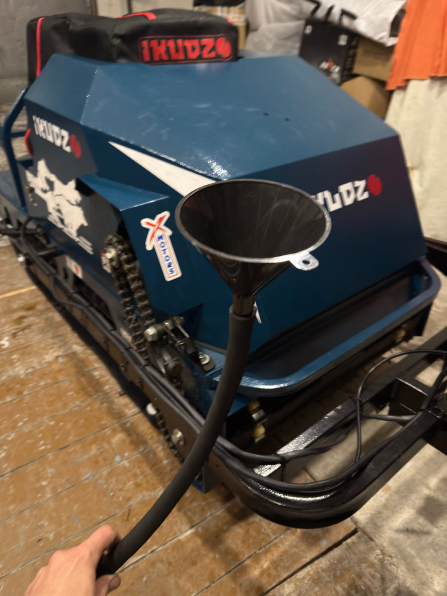 Итог: на слив ушло полчаса, и мой iKUDZO Terrain 1500/600 оказался в объятиях отработанного масла. Хорошо хоть, успел подстелить тряпки на гусеницу и пол масло не попало. Вывод прост: метод со сливным болтом меня не впечатлил. Да, со шприцем в прошлый раз было дольше, но зато чисто. В следующий раз буду изобретать что-то третье.