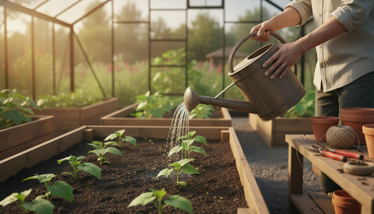Полив — только тёплой водой из бочки, 5-10 литров на квадратный метр два раза в неделю, по погоде. В жаркие периоды тонкая кожа и нежная мякоть держатся лучше, если замульчировать торфом или перегноем слоем около пяти сантиметров. Мы так и делаем: разложили мульчу, и почва под ней не трескается, нет перепадов влажности, меньше шансов на горечь. Подкармливаем раз в десять дней чередуя органику и минеральные удобрения с упором на калий во второй половине лета. Здесь важно не перекормить азотом, иначе огурцы пойдут в плеть и дадут пустоты. Проверяется просто: срез чистый, мякоть упругая, ломается с хрустом, без ватности.