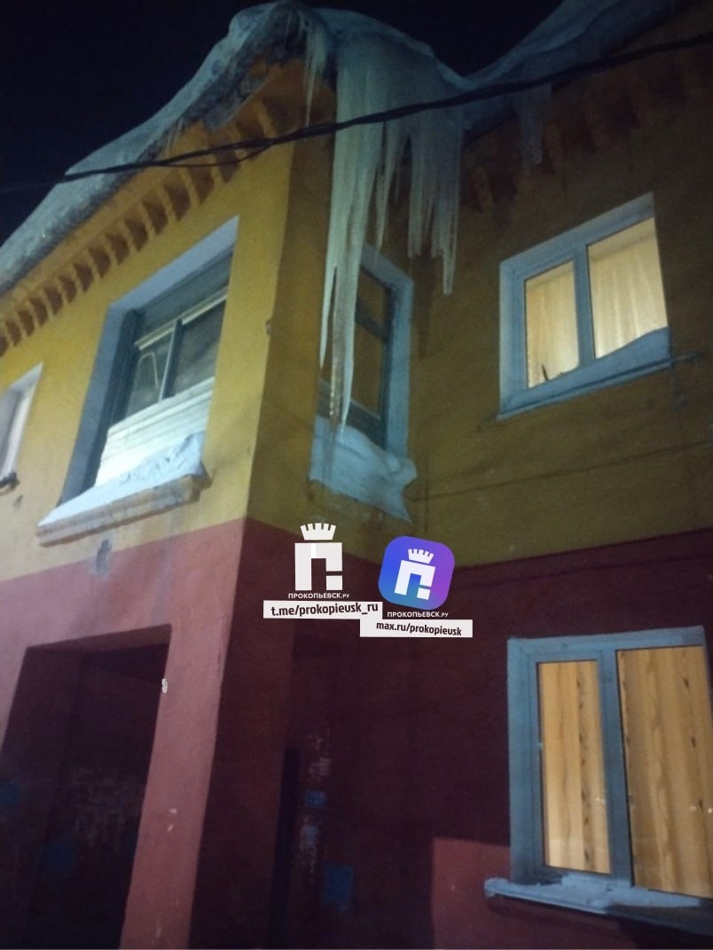 С опаской выходят из подъезда жители дома по ул. Социалистической 4. Над головой их поджидает сосулька-убийца.