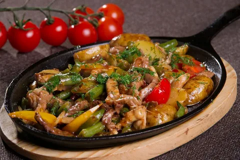 Говяжий язык с запеченными овощами