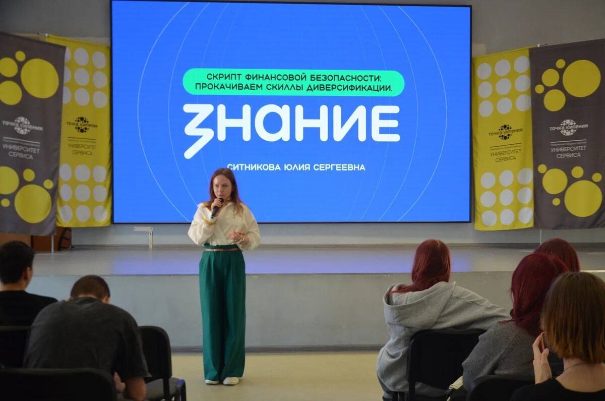 Открытая лекция на тему финансов прошла в Лектории Знания Научной библиотеки Университета сервиса. Лектору Юлии Ситниковой, преподавателю Колледжа креативных индустрий и предпринимательства университета, удалось увлечь студенческую аудиторию сложной темой «Скрипт финансовой безопасности: прокачиваем скиллы диверсификации». Так, лектор рассказала, как «ФРИ» (Формирование, Распределение, Использование) может помочь в сбережении заработанных денег. Образно и доходчиво были преподнесены такие понятия, как диверсификация, ликвидные и неликвидные активы, акции и облигации. Скрипт финансовой безопасности, как заметила спикер, предполагает три направления: формирование подушки финансовой безопасности, диверсификацию сбережений (не хранить их «в одной корзине»), мониторинг финансовых возможностей. Азы финансовой грамотности – путь к успеху студентов в дальнейшей жизни и профессиональном развитии. 📌Российское общество «Знание» – партнер Росмолодёжи, Минобрнауки России и Университета сервис