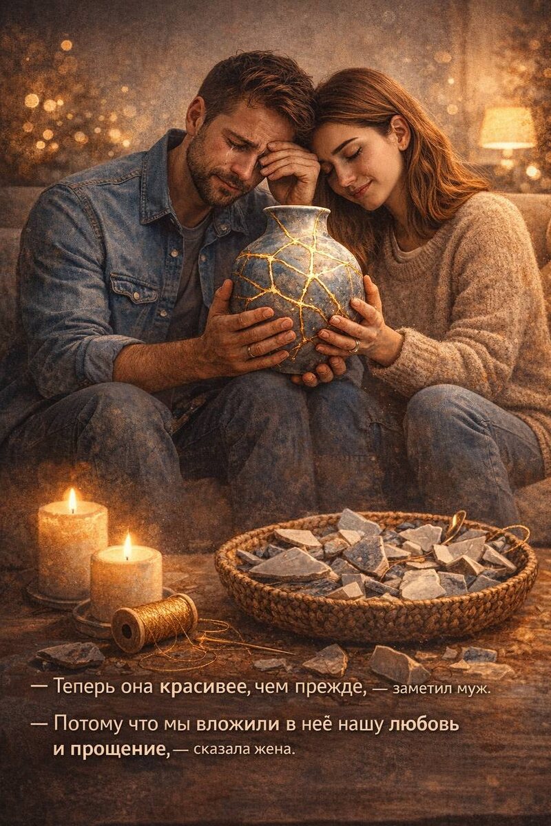 ☀️ В отношениях ищут близости. 🤗 Но что есть близость? Начнем вот с какой притчи: Муж и жена поссорились и в гневе разбилилюбимую вазу. Когда буря утихла, они смотрели наосколки и плакали. — Всё разрушено, — сказал муж. — Нет, — ответила жена. — Мы можем склеить её. Они бережно собрали осколки, склеили их, атрещины зашили золотой нитью. Ваза стала другой— с узором из золотых линий. — Теперь она красивее, чем прежде, — заметилмуж. — Потому что мы вложили в неё нашу любовь ипрощение, — сказала жена. О чем эта притча для вас? Что же такое, золотая нить?🧵 #новыйдень #жививсейчас #счастье