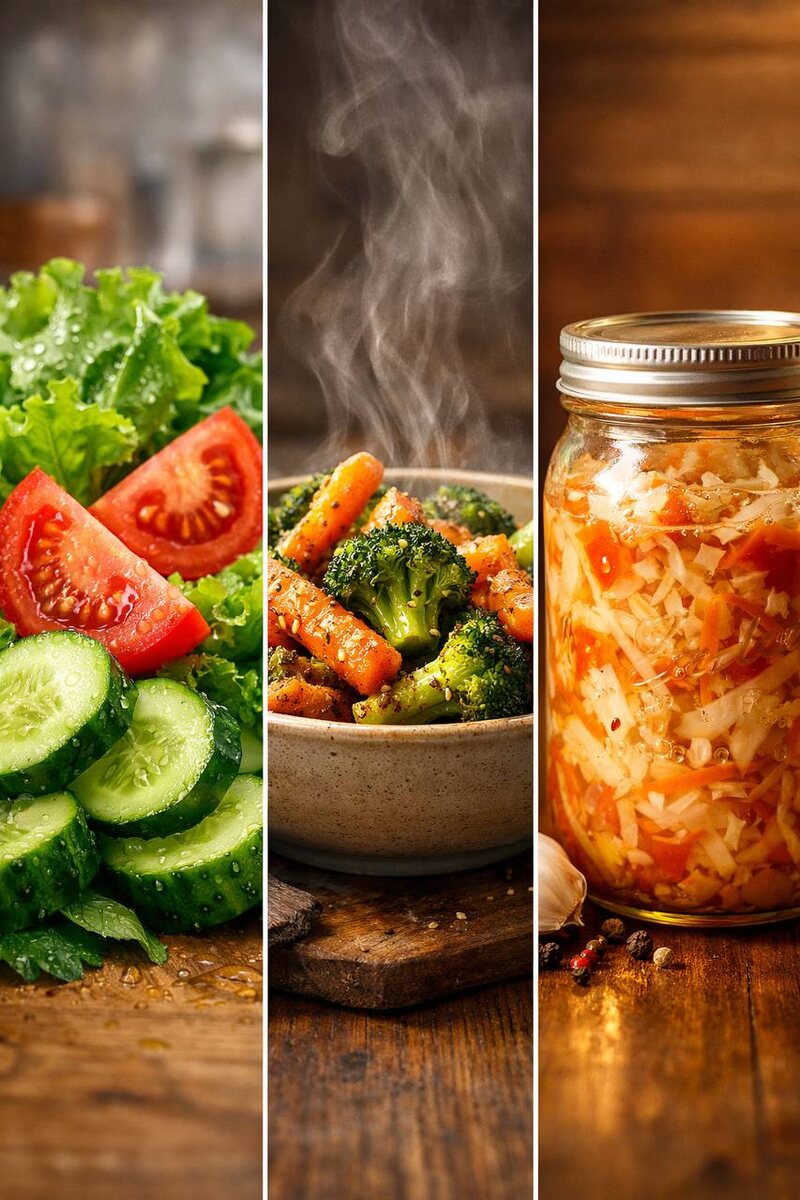 Сырые, Печеные или Квашеные? «Ешьте больше овощей!» — кричат из каждого утюга. Но почему после «полезного» салата из свежей капусты живот вздувается, как воздушный шар, а после винегрета наступает блаженство? Давайте разбираться с точки зрения гастроэнтерологии. Овощ один — эффекты разные. Кто победит в битве за здоровье вашего ЖКТ? --- ▎Участник №1: Сырые овощи 🥗 *(Огурцы, помидоры, зелень, сырая капуста, редис)* Аргументы «ЗА»: Это чемпионы по содержанию водорастворимых витаминов (особенно витамина С и фолиевой кислоты), которые разрушаются при нагревании. Кроме того, сырая клетчатка работает как «щетка» для кишечника, стимулируя перистальтику. Аргументы «ПРОТИВ» (Гастро-взгляд): Сырые овощи содержат грубую клетчатку (целлюлозу и гемицеллюлозу). У человека нет фермента, чтобы полностью расщепить клеточные стенки растений. • Механическое раздражение: Если слизистая желудка или кишечника воспалена (гастрит, энтерит), грубая клетчатка работает как наждачная бумага. • Газообразов