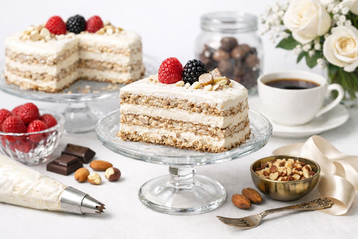 У «Маркизы» есть один эффект - тишина за столом. Потому что первый кусок всегда ломается хрустом безе, потом идёт тёплый ореховый вкус, а следом - нежный крем, который всё собирает в один идеальный укус. Это тот торт, который выглядит сложным, но на самом деле делается спокойно и по шагам.
