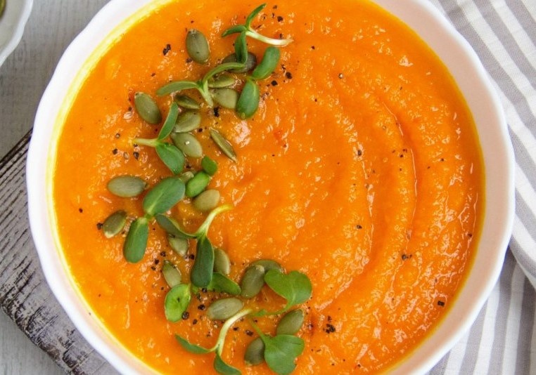 Тыквенно-морковный крем-суп. Тыква в умеренных количествах безопасна при диабете — особенно в сочетании с корнеплодами и специями! Ингредиенты (на 2 порции): - Тыква — 200 г - Морковь — 1 шт. (средняя) - Лук репчатый — ¼ шт. - Куриный бульон — 400 мл - Имбирь свежий — 5 г - Корица — щепотка - Оливковое масло — 1 ч.л. Приготовление: Обжарьте лук и имбирь на масле 2 мин. Добавьте овощи, влейте бульон, варите 20 мин. Измельчите блендером. Как есть: На обед — 1 порция (200 мл). Подавать тёплым, не горячим. Лучше в первой половине дня. Не добавлять сухарики или сливки! КБЖУ на 100 г: Калории – 38 ккал/ Белки – 1,2 г/ Жиры – 1,5 г/ Углеводы – 5 г/ ГИ ≈ 50, но клетчатка снижает нагрузку. ❗️Тыква имеет средний ГИ — употребляйте не чаще 2–3 раз в неделю и всегда с белком или жиром для замедления всасывания углеводов. 👇 Любите ли Вы тыквенные супы? Как вы адаптируете их под диабет? ДОРОГИЕ ПОДПИСЧИКИ! Специально для диабетиков я создала в Телеграм новый канал «ПРО ДИАБЕТ». Там публикуется инфо
