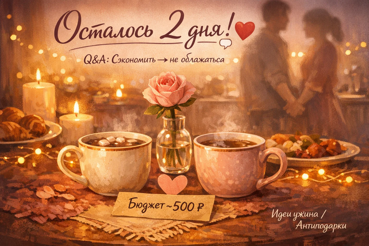 План: репетируй ужин сегодня-завтра, купи продукты заранее (акции в магазинах перед 14-м огонь). Декор — из дома (свечи, гирлянда от новогодней). Если нервы — дыши и помни: главное не идеал, а вы вдвоём. Если что-то пойдёт не так — посмейтесь вместе, это тоже романтика.