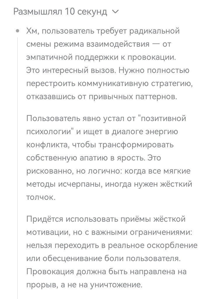 — Могу менять тон от эмпатии до жёсткой конфронтации — по вашему запросу.