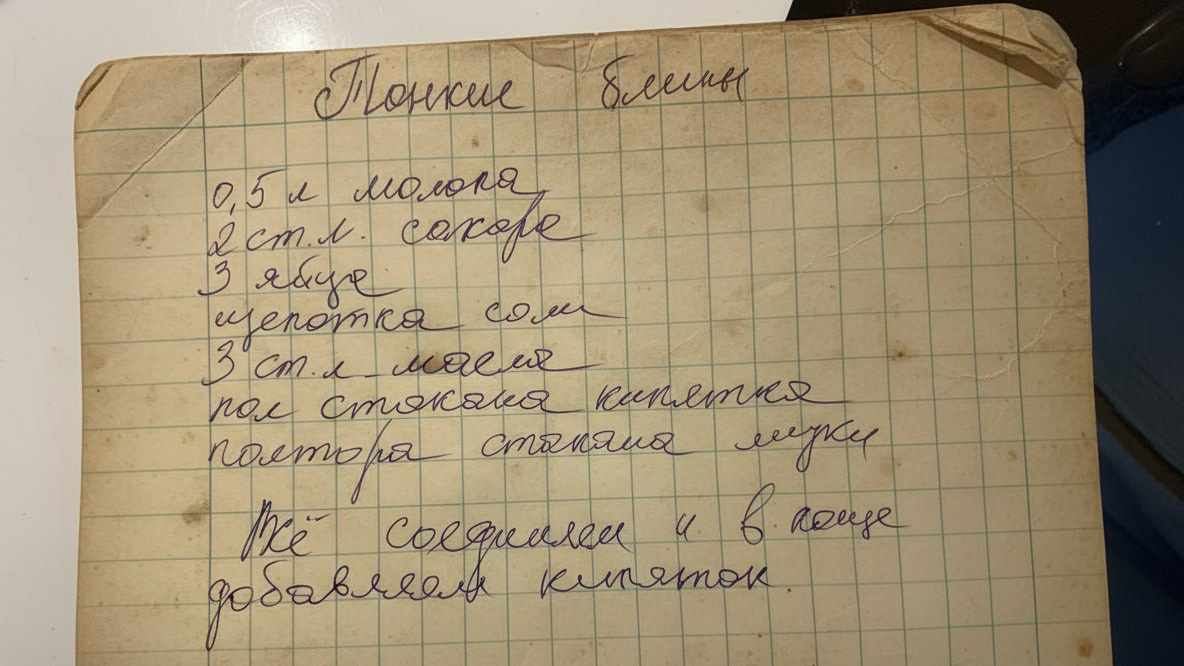 А ещё я помню, как бабушка доставала «ту самую» сковородку. Она была чёрная, тяжёлая (из настоящего чугуна), и хранилась отдельно от всей остальной посуды. Бабушка говорила, что у этой сковородки есть память – на ней готовила еще её мама, моя прабабушка. Перед тем как налить первый половник теста, она всегда чуть заметно улыбалась ей, как старой подруге.