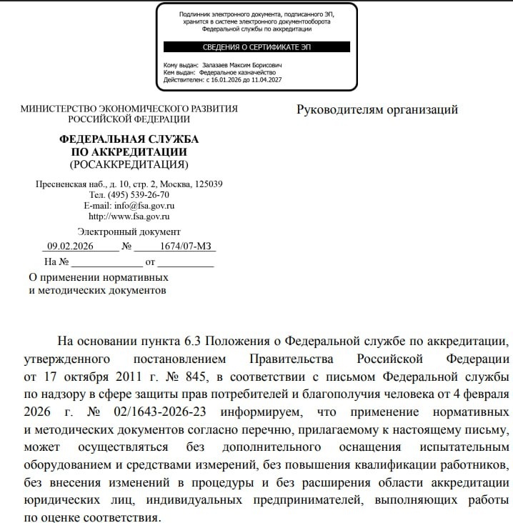 https://fsa.gov.ru/documents/24917/ Разъяснения№ 35 о применении методических и нормативных документов Росаккредитация в соответствии с письмом Роспотребнадзора установила эквивалентность методических указаний Роспотребнадзора. https://fsa.gov.ru/download/?document_file=18560 P.S. мне кажется, что по отношению к лабораториям Роспотребнадзор больше вреда наносит, чем Росаккредитация. Во-первых, устанавливает срок введения методических указаний всего три месяца, а публикует с большим опозданием. Во-вторых, потом еще долго рассматривает эквивалентна новая методика старой или нет. Мне кажется просто ждут, будут расширяться лаборатории или будут письма об эквивалентности запрашивать.