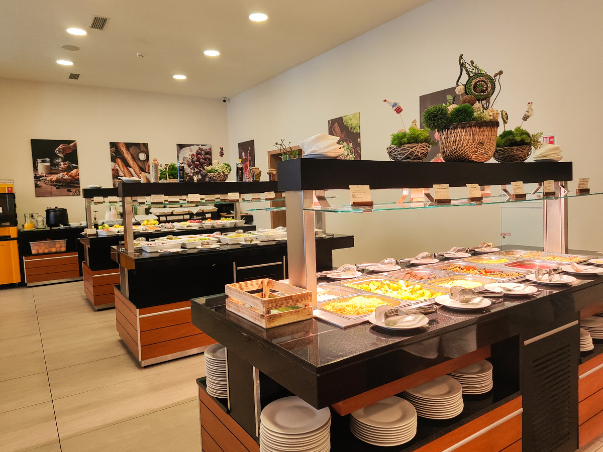 Вчера я писала о выходных проведённых в отеле "Софрино парк" (ссылка будет в конце статьи), этот отель работает по системе всё включено, но у них есть разные тарифы. У нас был тариф ультра всё включено, про него я и расскажу. По нашему тарифу в стоимость проживания у нас входило питание и алкоголь: можно было заходить в бары и рестораны отеля в любое время. В ресторане главного корпуса можно было поесть в любое время до 9 вечера, он вообще не закрывался в течении дня. На завтрак каждый день на шведском столе подавались разные блюд. Ассортимент включал много видов нарезок (сырных и рыбных), разнообразные овощи и фрукты — как свежие, так и консервированные. Отдельно хочется отметить выпечку и горячие завтраки: оладьи, блинчики, запеканки, омлеты и мясные блюда — всё готовилось по‑разному, так что на завтрак можно было подобрать и лёгкие, и сытные варианты. В целом можно было составить завтрак «под себя»: от диетического до плотного, на несколько часов вперёд. Так же во время завтрака н