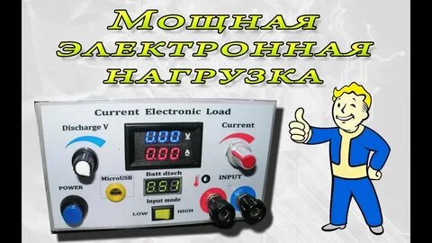 Недавно потребовалось протестировать различные очень мощные аккумуляторные батареи напряжением от 24 до 55 В. Так как для столь больших токов резисторы подобрать нереально — пришлось построить что-то полностью электронное. В качестве силового элемента используется 8 резисторов по 0,68 Ом, подключенных к силовому транзистору IGBT. Почему именно IGBT? Во время испытаний вылетело несколько обычных МОП-транзисторов, а IGBT оказались заметно более устойчивы. Резисторы установлены на радиаторах по 4 шт. В зависимости от потребностей включены последовательно для более высоких напряжений нагрузки или параллельно — для более слабых. Радиаторы прикручены на расстоянии 1 см от дна корпуса, под радиаторами просверлены отверстия, расход охлаждающего воздуха значительный. Силовой транзистор установлен на радиаторе от процессора ПК, охлаждается двумя вентиляторами. В качестве измерительного элемента и эталона для операционного усилителя, используется резистор 0,01 Ом, а в качестве измерителей счетчи