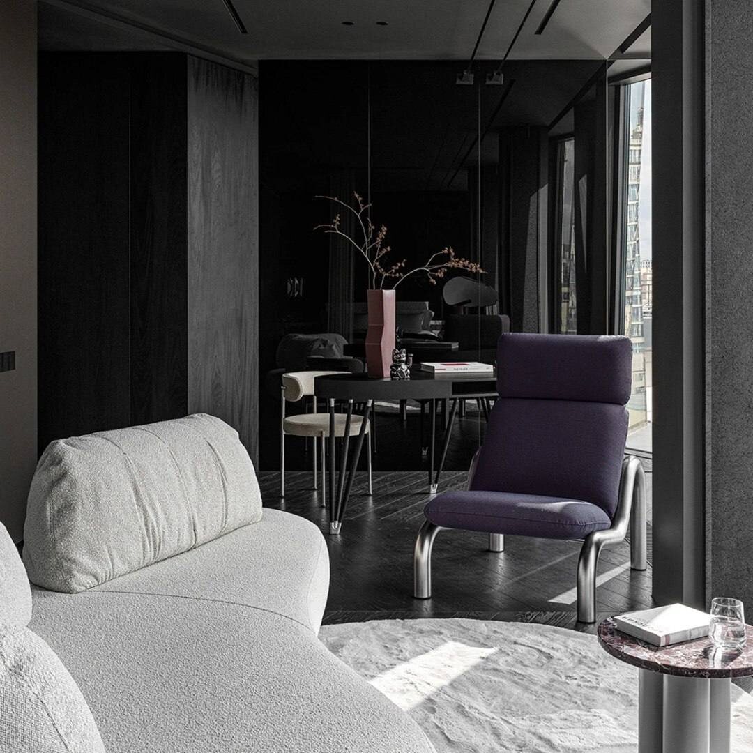 Главным пожеланием был отказ от излишеств в пользу выразительных и минималистичных решений, — Цель была преодолеть стереотипы о пустоте и простоте, наполнив пространство сложной эстетикой, драмой и эмоциями через работу с фактурами, светом и геометрией #дизайн@ProДизайн