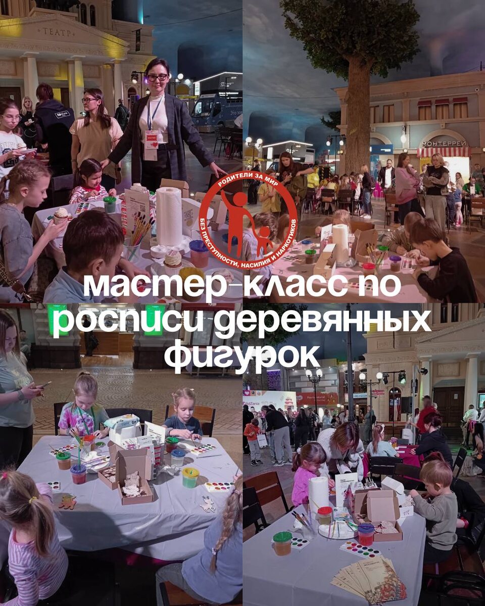 ! 🎨 31 января на Главной площади Кидзании мы вместе отпраздновали 10-летний юбилей этого удивительного проекта. 🏫 Центр профилактики преступлений «Родители за мир» с радостью стал частью большого праздника, организованного Кидзанией и проектом «Город неравнодушных». 🙋🏼♀️ Наши специалисты провели для детей творческий мастер-класс по росписи деревянных фигурок. 🥰 Юные участники не только раскрыли свои таланты, но и узнали, как важно с пользой и осознанно проводить свободное время. Особенно ценно, что родители и дети творили вместе — с улыбками, вдохновением и настоящим командным духом 💛 🎨 Каждый ушёл с ярким сувениром, сделанным своими руками, и отличным настроением! 💭 Что для вас ценнее всего в совместном времени с ребёнком? Давайте обсудим 👇