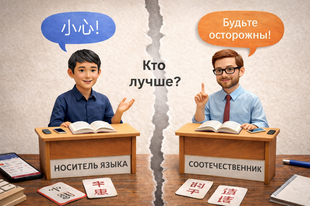 И за этим почти всегда стоит убеждение: носитель — значит автоматически лучше. Сразу обозначу: это моё субъективное мнение, основанное на опыте преподавания и собственного обучения. Я не считаю, что один формат «правильный», а другой — «неправильный». Всё зависит от этапа. Но если говорить о начале пути и среднем уровне, я чаще рекомендую преподавателя-соотечественника. Когда человек только начинает учить китайский, он сталкивается не просто с новыми словами. Он сталкивается с другой системой мышления. В этот момент ученику важно не просто услышать правило — важно его понять. Преподаватель-соотечественник может объяснить через сравнение: