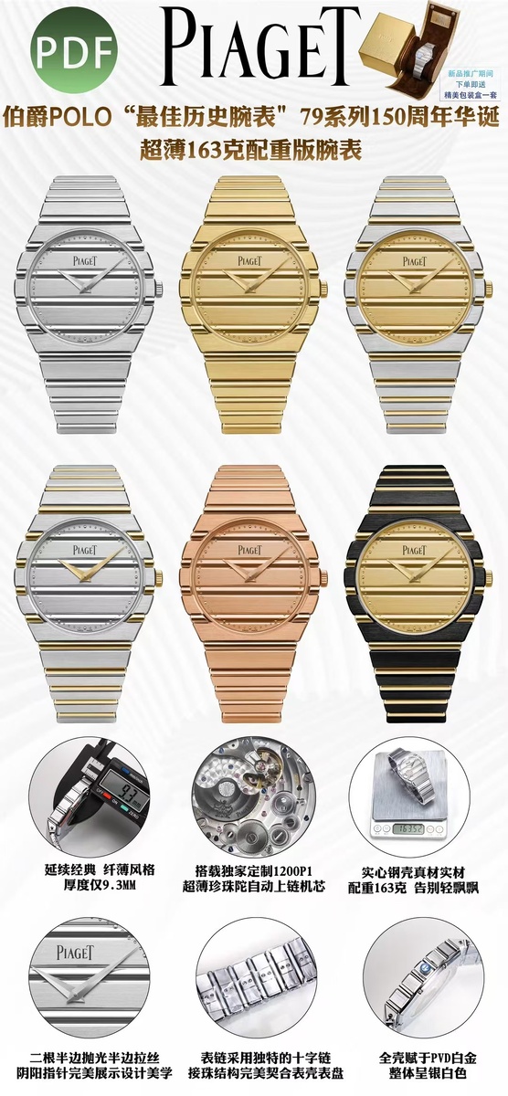 Казалось бы, Китайский новый год, но даже в это время некоторые фабрики и цеха продолжают работать. Новая, пока не совсем известная фабрика, замахнулась на такую модель как Piaget Polo 79. Заявлено что часы получили PVD покрытие, вес 163 грамма, толщину 9.3. Мотор-декорированный Hangzhou 5000 с запасом хода 42 часа. По детальным фотографиям пока не понятно как это смотрится снаружи. Ну, это всего лишь первая версия. Noob когда то был v1 потом дошел до v12 и это был колоссальный успех. Посмотрим, получит ли эта модель развитие и признания в колоурных кругах. Вот промо с фотографиями попавшими к дилерам. Какие будут мнения господа? Пишите в комментариях. Наш канал в телеграмм: https://t.me/RepgeekLive Наша группа в телеграм: https://t.me/repgeekcommunity Контакты: Tелеграм http://t.me/Repgeek Наша мастерская/*студия: https://amwatch.ru/ Avito: https://www.avito.ru/brands/i109041643?src=sharing