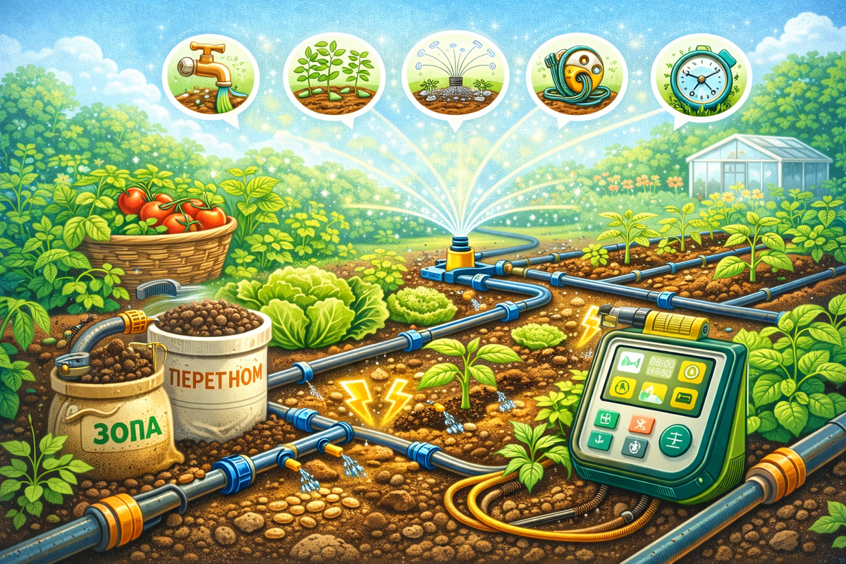 Весной, когда растения начинают активно расти, правильный полив становится ключевым фактором для получения хорошего урожая. Система полива помогает поддерживать оптимальный уровень влаги в почве, предотвращая как пересыхание, так и переувлажнение. В этой статье мы расскажем, как выбрать систему полива, подходящую для вашего участка, и как ее установить, чтобы сэкономить время и силы, а растения чувствовали себя комфортно. Существует несколько типов систем полива, и важно выбрать ту, которая подходит для вашего участка: Выбор оборудования зависит от типа полива и размеров вашего участка. Если вы хотите установить капельную систему, вам понадобятся капельницы, трубы и фильтры. Для системы с распылителями нужно учесть мощность насосов и тип распылителей, которые могут быть стационарными или подвижными. Мы подскажем, на что обратить внимание при выборе. Перед установкой системы полива важно правильно спланировать расположение труб, распылителей и капельниц. Учитывайте рельеф участка, разм