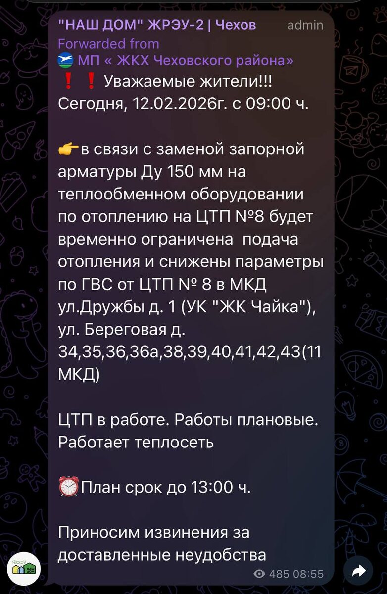 Недоброе утро. В Чехове снова зимние «плановые» отключения отопления.