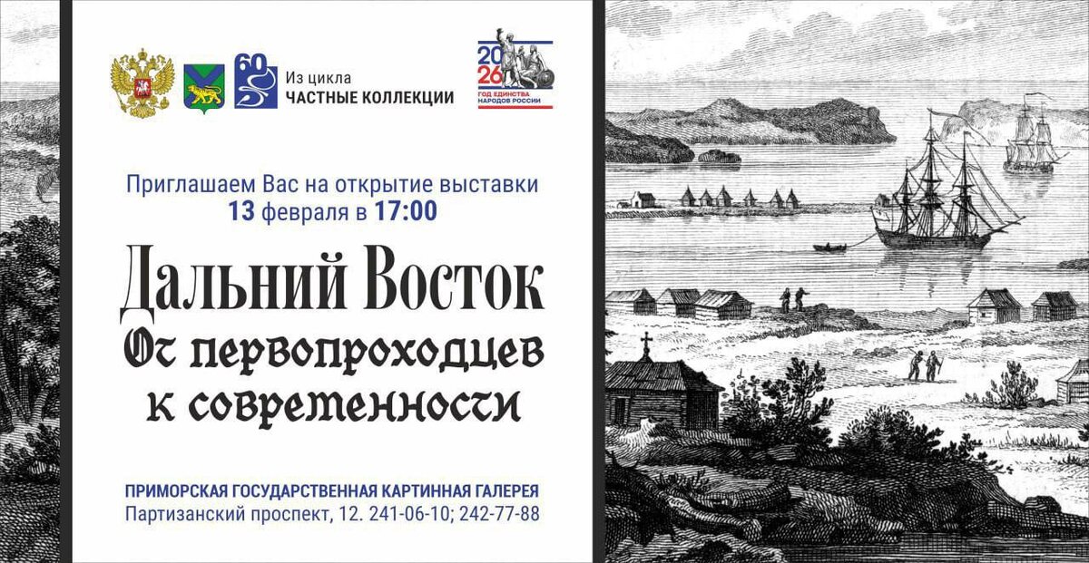 С 13 февраля в Приморской государственной картинной галерее начнёт работу масштабная экспозиция «Дальний Восток — от первопроходцев к современности». Это самая большая в регионе выставка гравюр, посвящённая истории Дальнего Востока. В неё вошло более 100 редких гравюр и иллюстраций конца XVIII — начала XX века: первые экспедиции по Приморью, быт коренных народов, освоение и развитие дальневосточных территорий. Ранее экспозицию частично представляли на ВЭФ и в ДВФУ. Теперь коллекция Климентия Сергеевича Целовальникова впервые собрана полностью в стенах Приморской государственной картинной галереи. Выставку можно посетить с 13 февраля по 22 марта по адресу: г. Владивосток, Партизанский проспект, 12. VL Pro NEWS - подпишись, это интересно