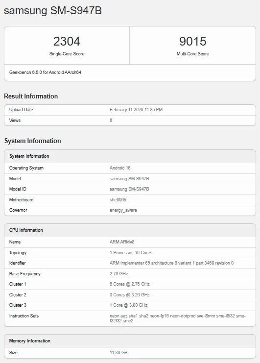 ! Южнокорейская версия Samsung Galaxy S26 Plus была замечена на платформе Geekbench в январе. Теперь, в преддверии презентации 25 февраля, на той же платформе появилась и глобальная версия Samsung Galaxy S26 Plus. Вот некоторые подробности, которые появились в списке. Список Samsung Galaxy S26 Plus… 📖 Полный материал @appsetter | Подписаться 👆