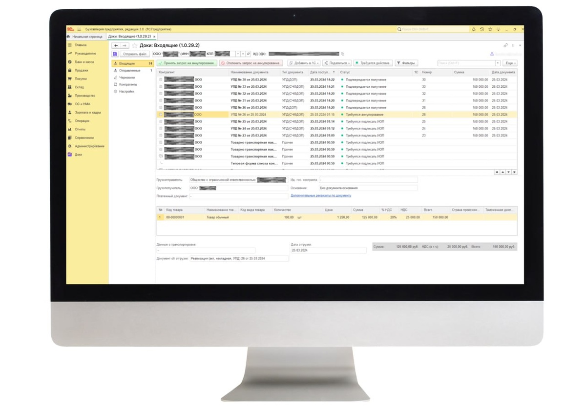 третий раз с вопросом, когда закроем кассовый разрыв, чтобы выплатить зарплату и оплатить поставщиков. 🔥 Каждое утро она печатает УПД, ТОРГ-12 и счета-фактуры вручную, обзванивает покупателей и отправляет курьеров по пробкам — стопки бумаг растут, а бизнес на грани. Апрель 2026 принесёт обязательную маркировку чая, июнь — кофе, и без ЭДО отгрузки встанут: УПД с кодами DataMatrix не передашь, все партнёры уйдут, штрафы до 100 тыс. руб. платить не хочется. Но отзывы коллег о сервисе Доки внезапно дали надежду: "Дебиторка сократилась вдвое", "Оплаты за день", "Готовы к маркировке без паники"... ⭐️Доки подключается к 1С без доработок: формируете УПД, ТОРГ-12 или счёт-фактуру одним кликом, отправляете — покупатель подписывает онлайн, данные в проводках. Интеграция с "Честным ЗНАКом" — есть ✅ Попробуйте бесплатно 3 месяца. ➡️ Калькулятор тарифов (нажмите, чтобы перейти)