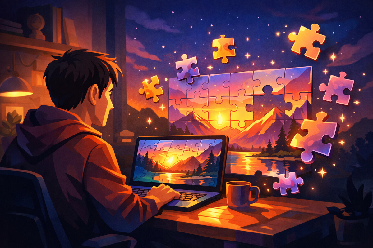 Я поймал себя на странной мысли: вечером рука автоматически тянется к телефону, но листать ленту уже не хочется. Слишком много информации, слишком быстрый ритм. Мозг вроде устал, но при этом не отдыхает. И вот тут неожиданно всплыла старая история — пазлы. Раньше я думал, что пазлы — это что-то из детства. Коробка, стол, рассыпанные детали, которые потом нужно убирать. Но оказалось, что формат изменился. Теперь можно собирать пазлы онлайн бесплатно — прямо в браузере, без скачивания и без всей этой “логистики”. И это ощущается совсем по-другому. Когда собираешь пазл, происходит простая вещь: внимание переключается с внешнего шума на конкретную задачу. Нужно найти форму, цвет, границу. Ничего сложного, но мозг начинает работать спокойно и последовательно. Многие используют пазлы как: При этом нет ощущения, что ты “залипаешь впустую”. Это спокойная концентрация. Не перегруз, а мягкий фокус. Честно — я не верил в цифровые пазлы. Казалось, что это не то. Но у онлайн формата есть несколько