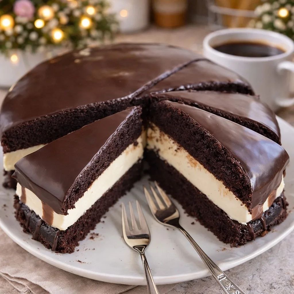 Корж: 4 яйц 200 г сахара 120 мл молока 120 мл растительного масла 180 г муки 40 г какао 10 г разрыхлителя щепоть соли 1 ч. л. ванильного сахара Яйца взбить с сахаром до пышной светлой массы. Влить молоко и масло, аккуратно перемешать. Отдельно смешать муку, какао, разрыхлитель и соль, вмешать в тесто до однородности. Выпекать при 170–175 °C около 35–40 минут. Остудить и разрезать корж пополам. Пропитка (обязательная для “мокрого” эффекта): 150 мл горячего молока 1–2 ст. л. сахара 1 ст. л. какао (по желанию) Всё смешать и щедро пропитать оба коржа. Нежный крем: 400 мл сливок 33% 200 г сливочного или творожного сыра 100 г сахарной пудры ваниль по вкусу Сливки взбить до мягких пиков, добавить сыр и пудру, взбить до гладкого крема. Шоколадная глазурь: 100 г тёмного шоколада 80 мл сливок Сливки нагреть (не кипятить), залить шоколад, размешать до глянца. Сборка: Корж → пропитка → крем → корж → пропитка → глазурь. Убрать в холодильник минимум на 4 часа, а лучше на ночь — тогда торт с