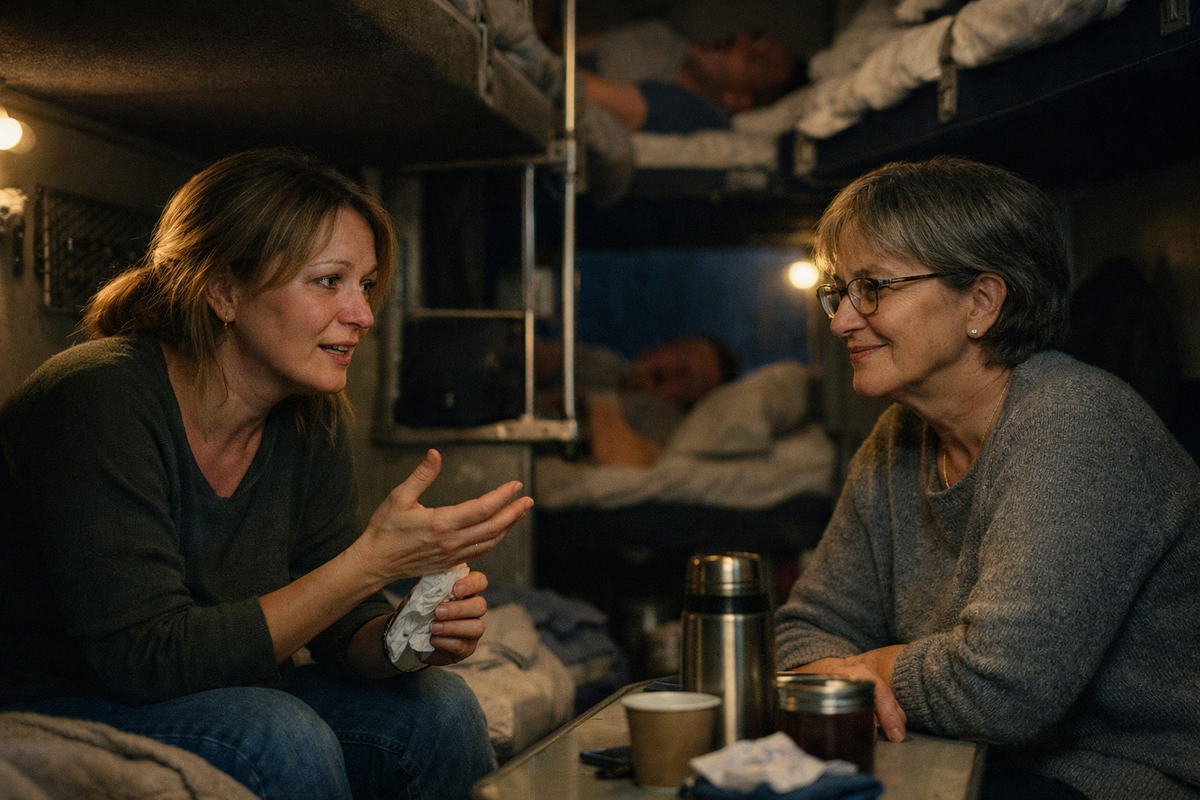 Не знаю, как это произошло. Наверное, дело в поезде. В мерном стуке колёс, в полумраке вагона, в ощущении, что ты между двумя мирами — уже не дома, ещё не на месте. В поезде люди рассказывают друг другу то, что никогда бы не сказали на твёрдой земле.