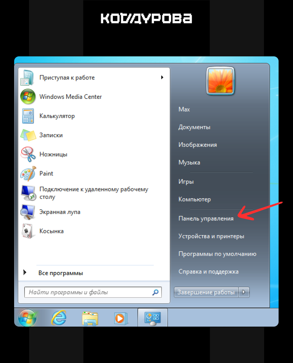 - Выбрать «Панель управления» в правой части меню.