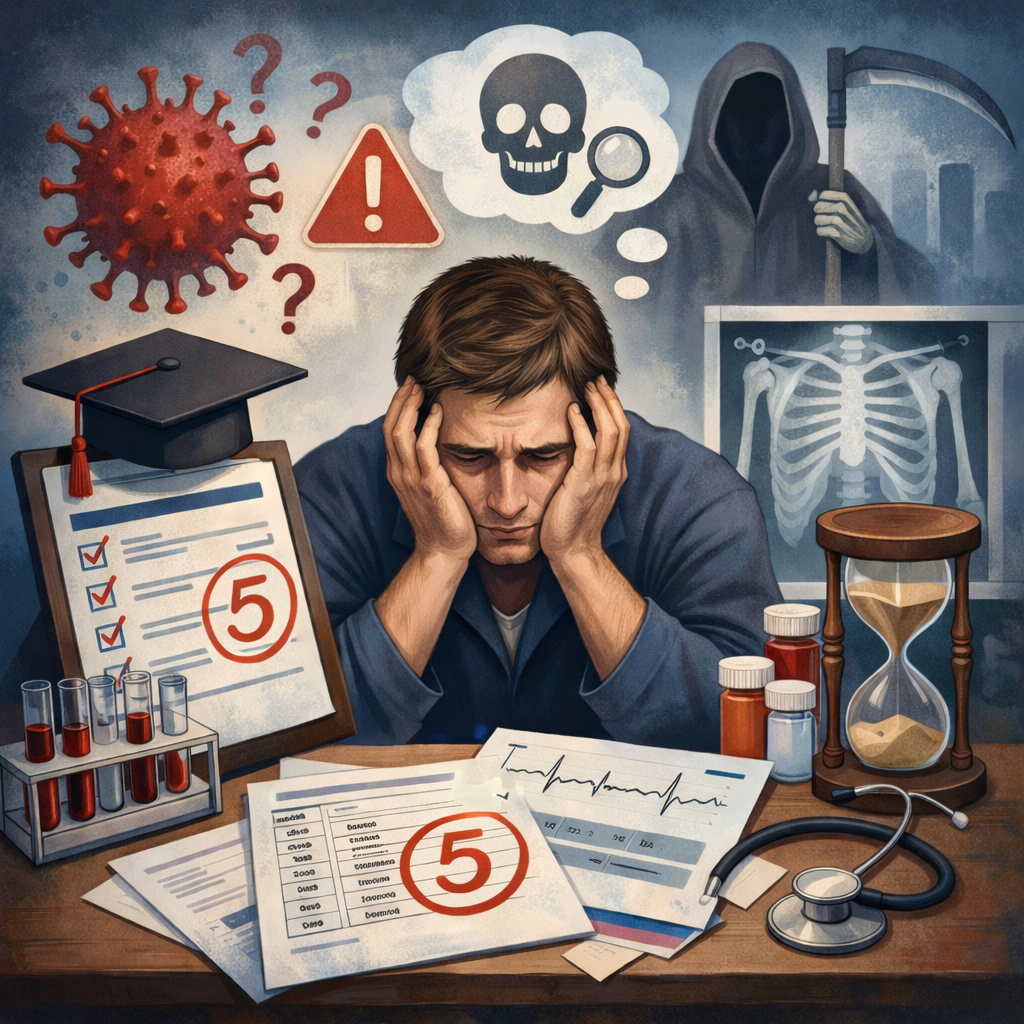 Ему страшно не от конкретного диагноза. Ему страшно от мысли: «я не могу быть уверен на 100%». И пока эта мысль непереносима, проверки будут повторяться.