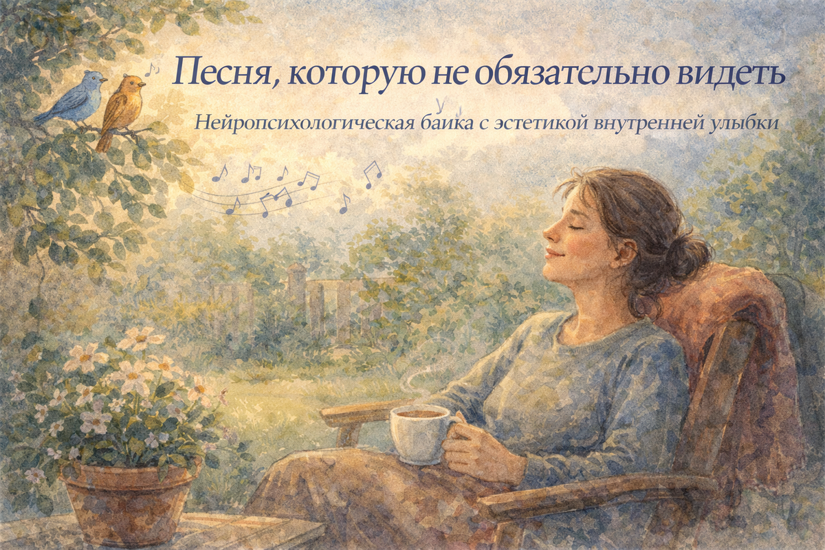 Нейропсихологическая байка с эстетикой внутренней улыбки Сижу во дворе. Ничего особенного не происходит. Тёплый воздух, чуть шуршит листва, где-то совсем рядом, но вне поля зрения, поют птицы. Их не видно. Я даже не пытаюсь искать глазами. Закрываю глаза и просто слушаю. И вдруг замечаю, как эта невидимая песня меняет состояние. Становится теплее внутри. Спокойнее. Появляется то самое ощущение жизни, которое невозможно измерить, но его всегда узнаёшь. Птица ведь поёт не для того, чтобы её оценили. Не для лайков, не для аплодисментов. Она поёт, потому что иначе не может. Потому что так устроена её природа. И я ловлю себя на мысли, что с моими текстами происходит примерно то же самое. Я часто что-то придумываю. То напишется история, то родится мысль, то захочется сделать что-то для детей или для взрослых, чтобы стало чуть легче дышать. Иногда это серьёзно, иногда смешно, иногда просто тихо и по-домашнему. Всё это я отправляю в мир, как ту самую птичью песню, не зная, кто её услышит. Рань