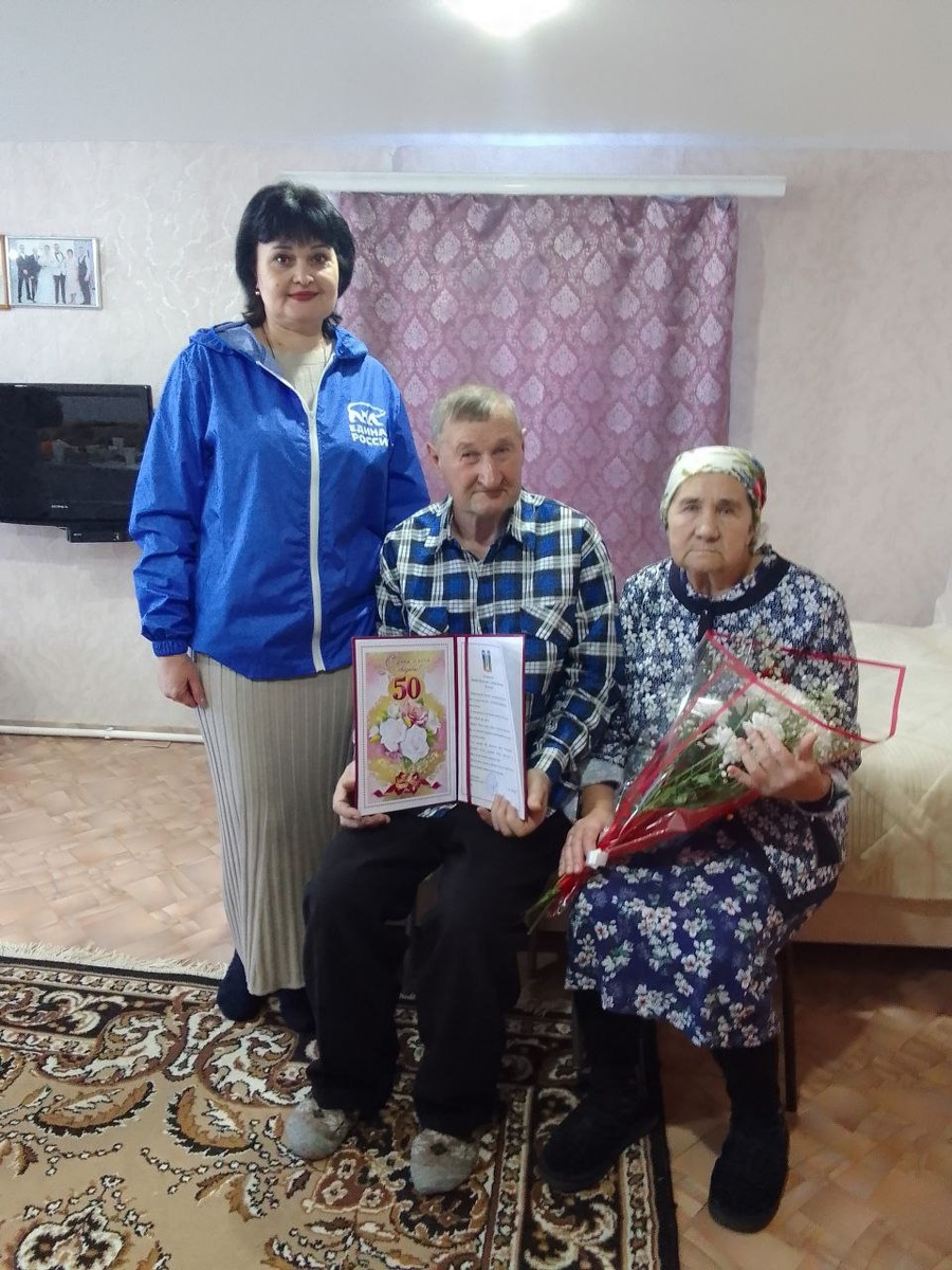 Секретарь Рындинского первичного отделения Порецкого округа Наталья Бучурлина поздравила супругов Шлягиных из села Рындино с 50-летним