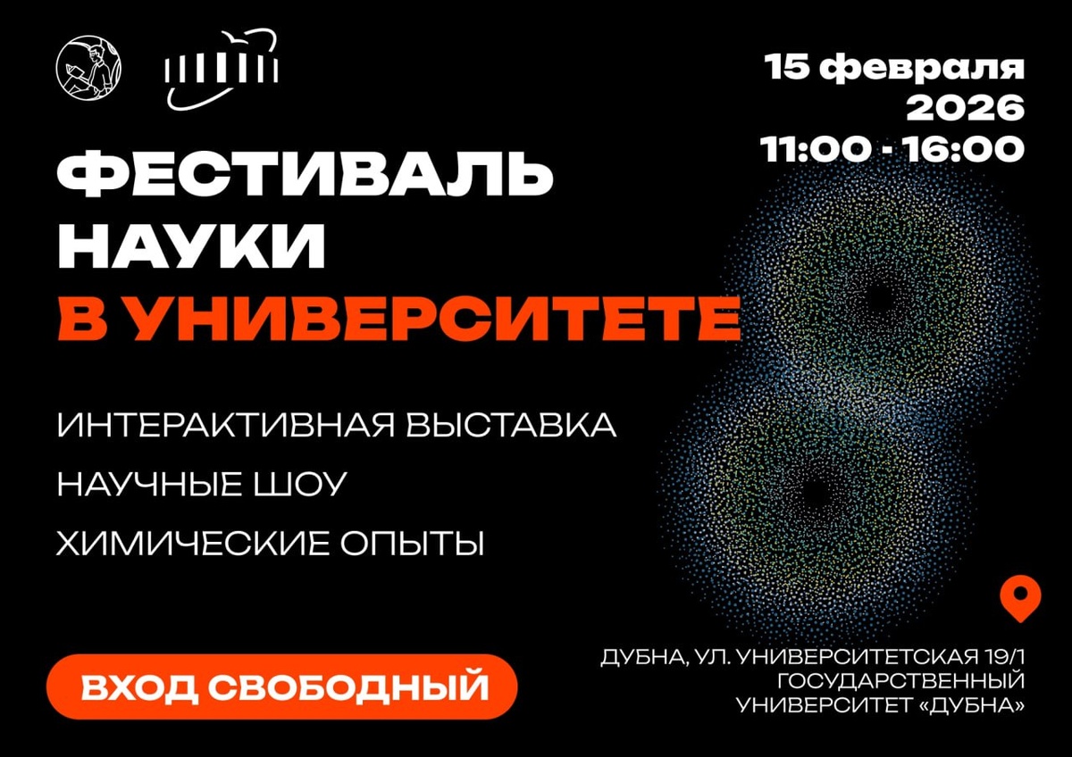 ! В ближайшие выходные университет «Дубна» превратится в большую научную лабораторию для гостей всех возрастов. 🧪 Опыты, которые можно увидеть и попробовать 🎨 Мастер-классы по эбру и созданию «кислотно-основных» картин 🧫 Эксперименты, 3D-эффекты и мини-модели установок ОИЯИ ♻️ Игры и интерактивы об экологии Ведущие учёные и специалисты ОИЯИ, преподаватели и студенты университета подготовили насыщенную программу, чтобы вдохновить будущих исследователей. 📅 15 февраля, с 11:00 до 16:00 ул. Университетская, 19, корп. 1 Вход свободный 6+ @Телеканал «Дубна»
